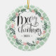 Elegant Christmas themed double sided floral green ceramic ornament with green and red foliage wrath and Christmas typography in the middle, it also has editable text at the bottom. The text is editable on both sides at the same time, click "personalize this template" and change the year or write what you wish to be at the bottom. This Christmas ceramic ornament is suitable as a keepsake, housewarming gift, or just as a home living decor.