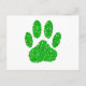 Green Foliage Dog Paw Print Postcard