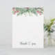 Winter Greenery Thank You card. This design features an illustration of pine branchlets and greenery foliage with red berries on white background. Text "Thank You" is written in a calligraphy style. Personalize with you own text.