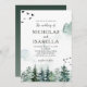 Green Forest Pine Tree Watercolor Rustic Wedding Invitation