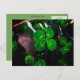 This postcard features a photograph of a green four leaf clover, symbol of good luck and perfect for St. Patrick's Day.