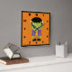 A clock with a fun Halloween featuring a green Frankenstein monster.