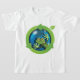 A green frog over a globe of the earth as an environmental design. This design looks really effective on this Boys T-Shirt