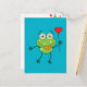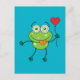 Green frog falling madly in love postcard