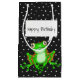 Cute green frog on black and white polka dot pattern with speech bubble for any age birthday.