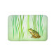 This bath mat features a small female green frog with a yellow belly sitting among the grasses at the pond. She seems lonely as if she is waiting for her Prince Charming to appear.