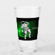 Shot glass features black and white astronaut with planets on green galaxy background. Personalize with name or other text