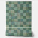 Textured Vinyl Wallpaper with a pattern of various shades of green ceramic field tiles. This design comes from Oregon tile maker Fay Jones Day.