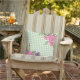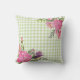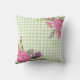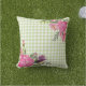Prettify your outdoor space, with this lovely UV resistant pillow, with a light green and white gingham pattern. Graphics of watercolor painted pink peony flowers, decorate the upper right and lower left corners of the pillow. Customize to add your own text.