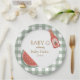 Green gingham baby-q themed baby shower plate for gender neutral celebration.