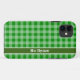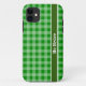 Green chequered fabric closeup, tablecloth texture, green gingham fabric. Personalize by editing the text in the text box or delete text for no monogram.