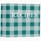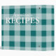 Personalized green and white gingham pattern kitchen recipe binder book Custom cookbook with personalizable colour and name. Cute personalized cooking gift idea for women; ie mom, aunt, wife, sister, grandma etc. Modern plaid print design. Country chic. Elegant typography for custom name.