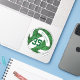 This green and white volleyball sticker features a floral kaleidoscopic pattern blended with the green volleyball panels and an artsy abstract swirl pattern blended with the white panels - her name and jersey number are customizable - by katz_d_zynes