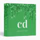Green glitter drips white monogram name binder