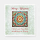 Bright and vibrant stained glass design of multicolored floral mandala, in a red frame. With pale green glitter background and "Merry Christmas". You can change the customizable personal greeting at the bottom of the design to your own message.