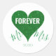 Green Glitter Heart Mr+Mrs Round Sticker