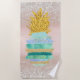 Green Glitter Pineapple Tropical Glitter Bokeh Beach Towel