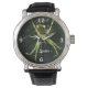 Photograph of a green glowing Spider in his web, displayed on a Watch. Yikes!!