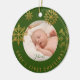 Bright green gold Snowflakes Christmas holiday photo ornament for new parents who just had a baby. Personalize it by adding the name. Makes a perfect gift for your friends or family.