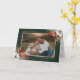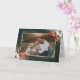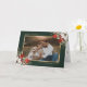 Elegant green and gold photo Christmas card featuring a watercolor painting of poinsettia, holly and red berries. Easily personalize this green and gold photo holiday card with your photo and text.
