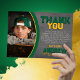 Green and Gold Chalkboard Graduation Thank You Card - 1 Photo - Grey Chalkboard