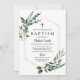 Green Gold Cross Baptism Invitation Christening