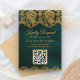 Green Gold Foil Lace QR Code RSVP Wedding Website Enclosure Card
