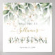 Greenery Welcome to Baptism sign - this design features a watercolor illustration of green and gold foliage.