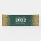 green gold glitter script class of graduation party banner design. Modern gold and glitter effect and on trend bold typography and script text. Part of a collection.