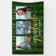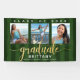 Announce to the world that your favourite grad has reached their milestone with this stunning, simple, modern, personalized 3 photo banner. Sparkly faux gold glitter handwritten script calligraphy overlays a hunter green striped background. Add 3 photos of your choice and personalize the custom text with your graduate’s name, school name and class year. Choose from indoor or outdoor options. Matching invites, thank you cards, cap toppers, fans, napkins, plates and other graduation goodies are also available in this trendy and stylish collection. Guaranteed to preserve cherished memories of their special occasion!