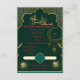 Complete your Islamic wedding stationery suite with this elegant green and gold Muslim enclosure card. Designed with a luxurious emerald background and intricate gold arabesque patterns, this details card perfectly complements your Nikah or Walima invitation.