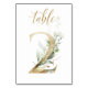 Beautiful table number card with a botanical motif - a watercolor illustration of green and gold leaves. Table 2. Please, check all available numbers