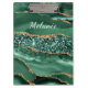 Green Gold Marble Clipboard with Custom Name