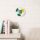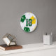 Choose your own colours! This custom colours wall clock for a soccer player's sports room features the image of a simple soccer ball that has green, gold and white panels upon which you can personalize the athlete's jersey number - to change the colours of the soccer ball's green & gold panels and the jersey number, click the "Edit this design" button (above) - clock face numerals can be removed - by katz_d_zynes