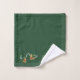Here's a pretty three piece bath towel set that will dress up your guest or master bathroom for the Holiday Season! It features an image of gold and red Christmas bells connected with a white ribbon and decorated with holly sprigs. The images are at the bottom of each piece, and placed on a dark Christmas green background. The bath towel is a pretty green and gold plaid, with the image placed on the green bottom border, which is lined in red. Festive!