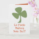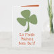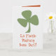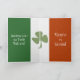 This St. Patrick's Day card has one green and gold shamrock on the front and another on the inside, along with the colours of the Irish flag. Complete with the Gaelic St. Pat's blessings, "Lá Fhéile Pádraig Sona Duit," "Beannachtaí na Féile Pádraig!" "Sláinte is táinte!" it is the perfect for sending all of your St. Patty's Day holiday invitations.