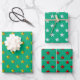 A festive wrapping paper trio sheet set for the Christmas holiday season featuring holiday red and forest green stars on a mid green background. Great for any occasion and makes an impressive gift wrap.