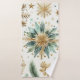 Serviette de bain festive et élégante avec un motif de vacances vert et or avec flûtes d'aquarelle, flocons de neige, feuilles de pin et ornements. Mélangeant éléments géométriques et botaniques abstraits avec une touche bohème, il est parfait pour le décor de salle de bain d'hiver et d'automne.