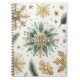 Elegant holiday notebook featuring watercolor floral elements in green and gold. This modern boho design combines snowflakes, botanical leaves, festive ornaments, and foil-inspired accents—perfect for winter journalling, planning, or thoughtful seasonal gifts.