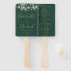 These fans were exactly as pictured. The quality is great. Perfect favor for a wedding!...I will make assembly a little easier by using a hot glue gun and finish them off with a ribbon. Beautifully printed. Crisp and clear text.
