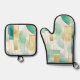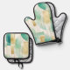 Green Gold White Abstract Oven Mitt & Pot Holder Set