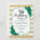 Green Gold White Stripes Roses 70th Birthday Invitation