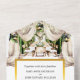 A beautiful all-in-one sophisticated, upmarket outdoor winery watercolor invitation featuring wooden tables with crisp white tablecloths set below soft curtain drapes adorned with glowing lanterns and warm lighting. The tables are set in an al fresco dining style and the interior opulence spills from the inside to the outdoor vineyard. This ai design is inspired by the wine farms of the world, whether it be Portugal, Tuscany, Italy, Cape Town, the Napa Valley or any other wine region. Celebrate your union with this forest / olive green, white, ivory, beige and faux gold palette that is ideal for any bridal couple looking for a touch of class and elegance at their wedding. Wow your guests with this unique and original art work that has a tear off strip at the bottom for your guests to r.s.v.p on. This budget friendly invite is ideal for the discerning couple that wants to stand out.
