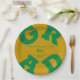 Green Grad Text on Gold Graduation Custom Name Paper Plate