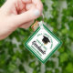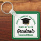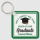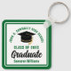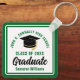 These modern green and white custom graduate keychains feature classy typography of your university or college name for the class of 2025. Customize with your graduating year next to the chic handwritten script and black grad cap for a great personalized congratulations graduation gift.
