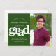 Make sure all your friends and relatives will still be able to celebrate your graduate’s milestone event, regardless of current global unforeseen circumstances. Send out this stunning, simple, modern, personalized photo “Change of Plans” postcard for an event to remember. Bold, graphic, white typography overlays a hunter green background. On the right hand side, add a photo of your choice. Personalize the custom text with your graduate’s name, class year and date information. Your custom message, a hunter green graduation cap icon and your return address adorn the back. Matching invites, thank you cards, cap toppers, napkins, plates and other graduation goodies are also available in this trendy and stylish collection. Make sure their special celebration will still be as festive as originally planned!