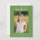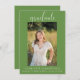 Celebrate the graduate with this green graduation invitation. Add a photo and customize text on the front and back to include all details for your graduation party. This invitation is available in a variety of different colours. Visit my graduation collection to view all options.