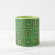 A pattern of granny squares in shades of green is a fun design for active senior citizens and their children.