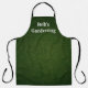 This green apron is accented with a grass pattern and further personalized with a business name, making it perfect for branding.