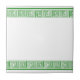 Ceramic tile with a Grecian frieze design. You can customise this ceramic tile with any text of your choice. Should you require any help with customising then contact us through the link on this page. You can have this ceramic tile in any colour you want. Just select your preferred colour from the menu. Green Grecian frieze pattern ceramic tile